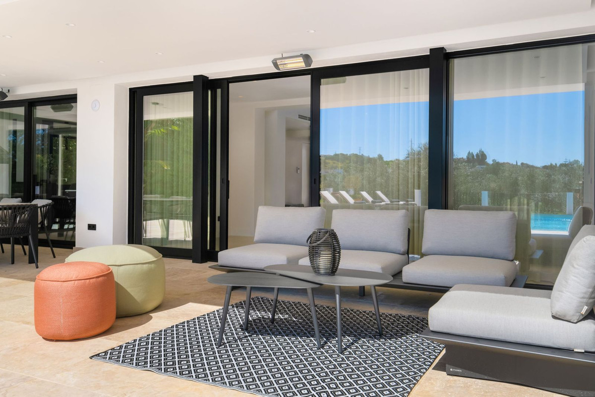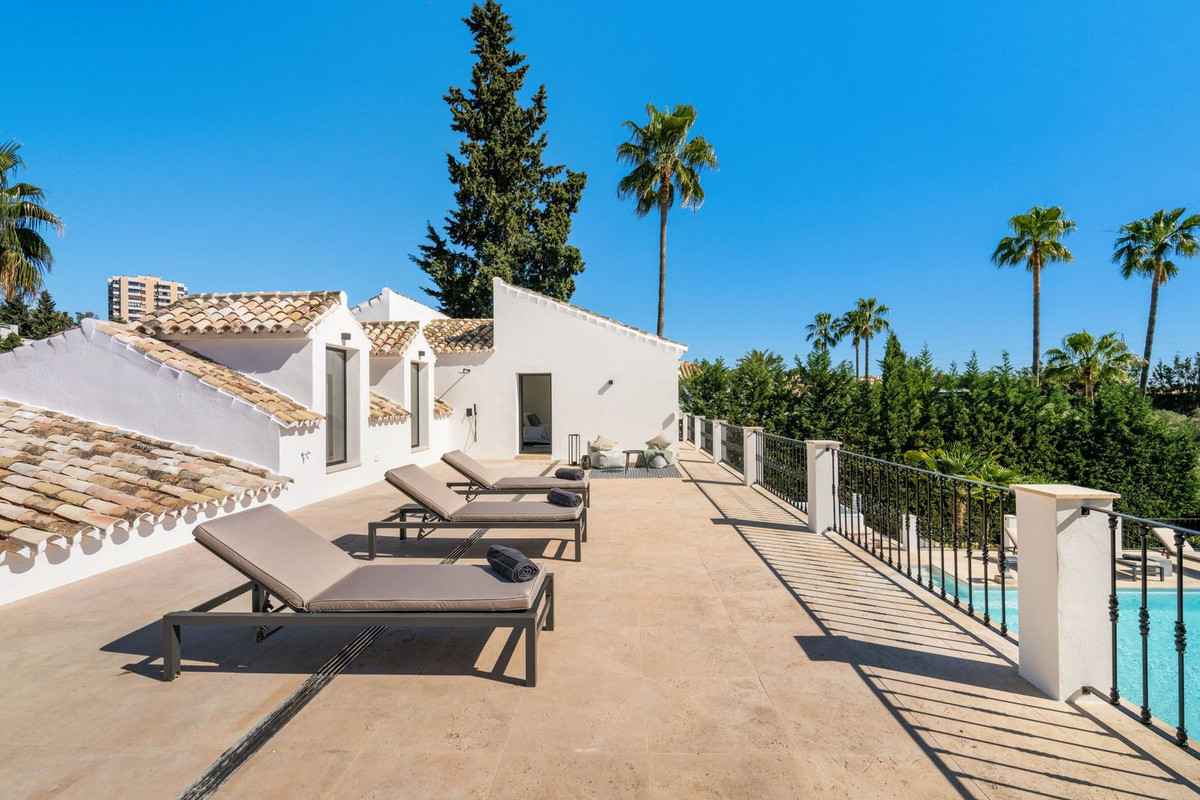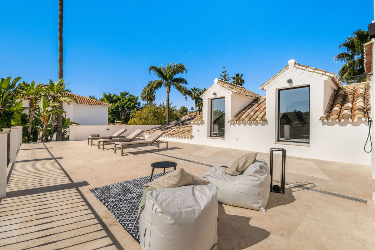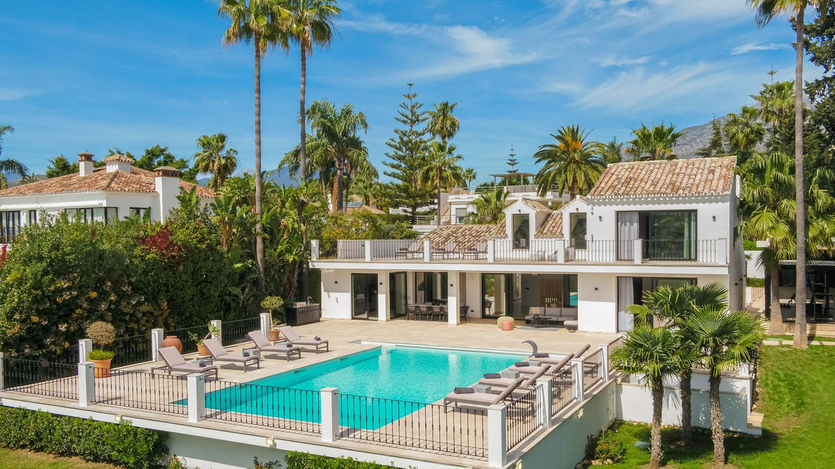 Fantastic recently renovated villa located in the center of the Golf Valley of Marbella, in the exclusive gated community of Parcelas del Golf, with 24 hour security. The villa sits on a large west facing plot of over 1,300 m² and enjoys a frontline golf position on Marbella's most prestigious golf course, Las Brisas Golf. The Villa has large living rooms and large bedrooms. In addition, it offers large terraces with magnificent views of the Las Brisas golf course. Distributed over two levels, this villa offers, a private heated saltwater pool with integrated cover and private parking for 2-3 cars. This Villa has a vacation rental permit for short-term rentals, with a projected income of €360