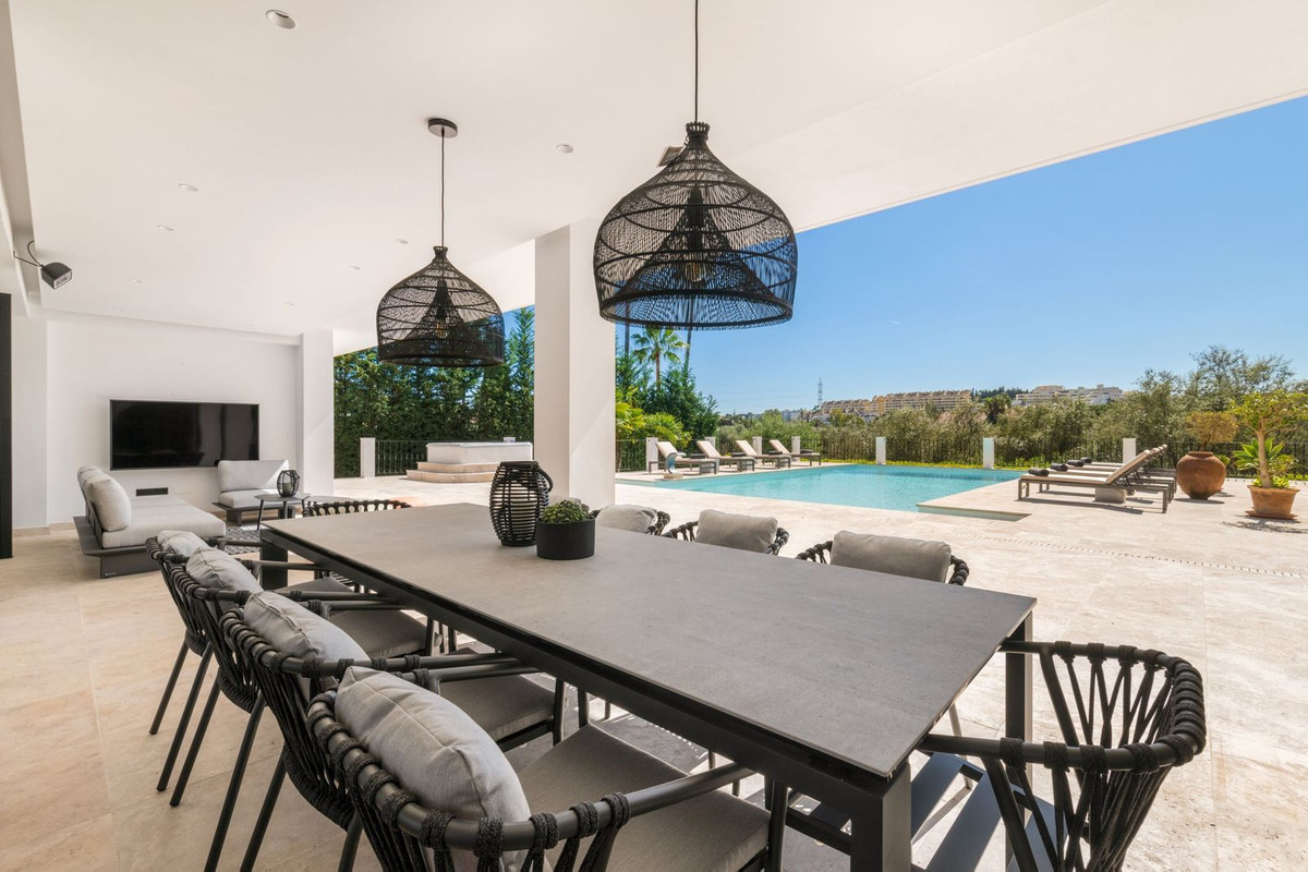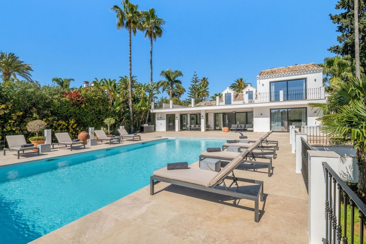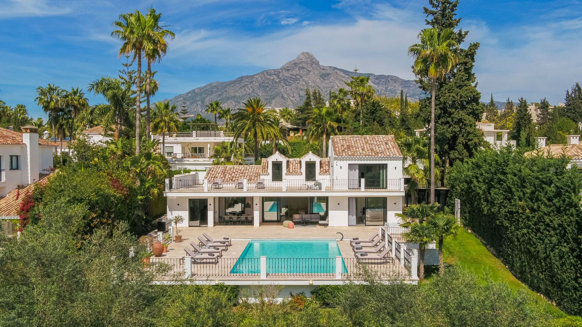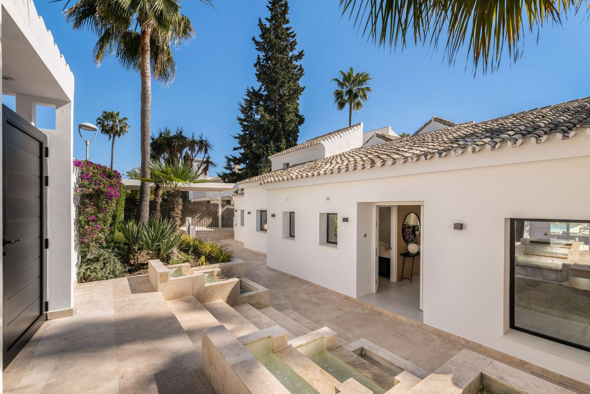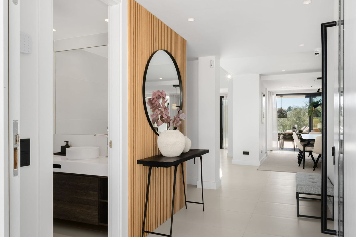 Fantastic recently renovated villa located in the center of the Golf Valley of Marbella, in the exclusive gated community of Parcelas del Golf, with 24 hour security. The villa sits on a large west facing plot of over 1,300 m² and enjoys a frontline golf position on Marbella's most prestigious golf course, Las Brisas Golf. The Villa has large living rooms and large bedrooms. In addition, it offers large terraces with magnificent views of the Las Brisas golf course. Distributed over two levels, this villa offers, a private heated saltwater pool with integrated cover and private parking for 2-3 cars. This Villa has a vacation rental permit for short-term rentals, with a projected income of €360