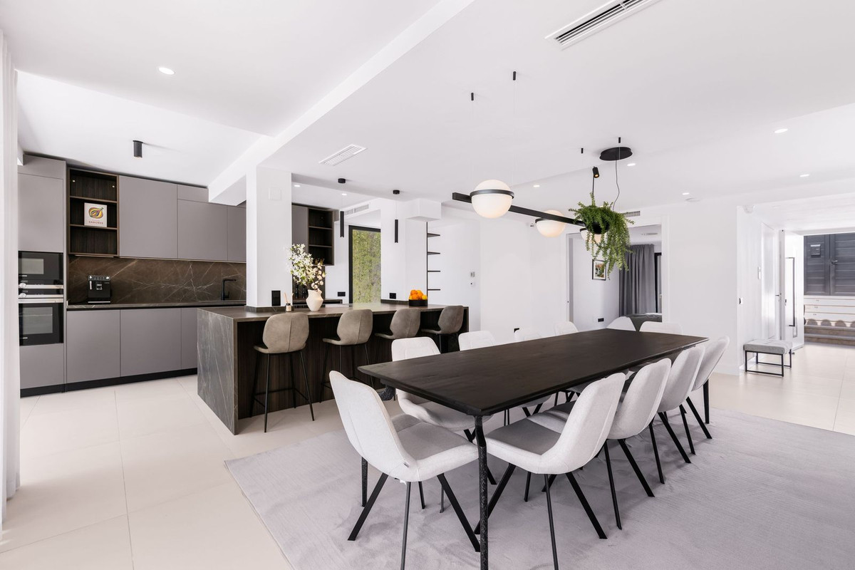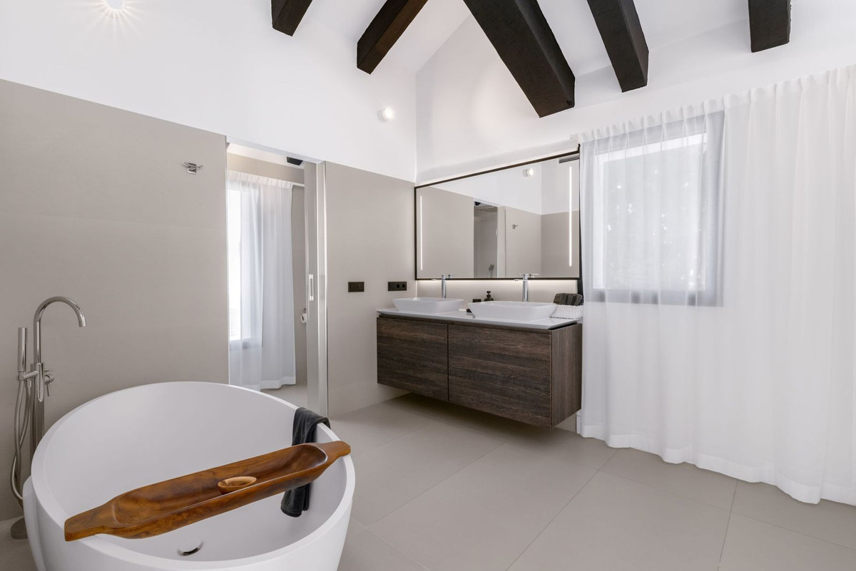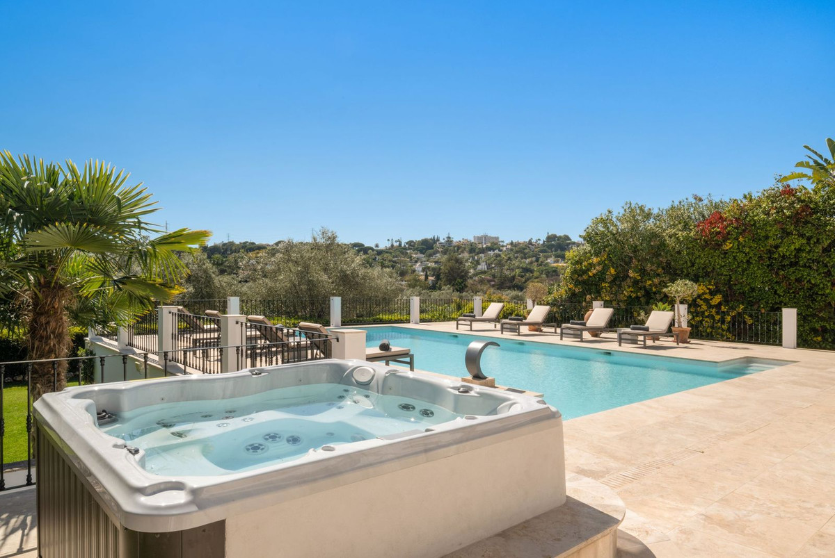 The large garden space features an outdoor kitchen and barbecue area, as well as a jacuzzi with enough space for 8 people. Solarium with chill out area and panoramic views.